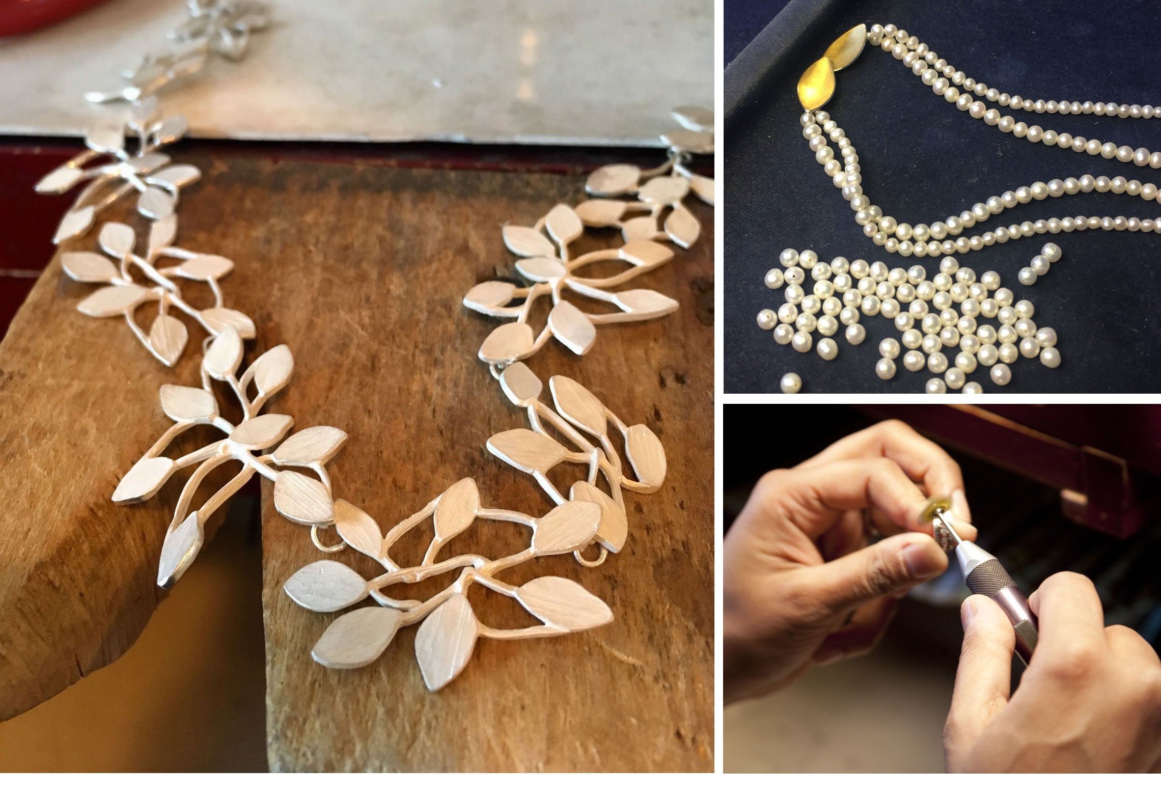 Our jewelry is handmade. Our preferred materials are silver, gold, & diamonds, and we meticulously finish each piece at the jeweler's bench. We file, saw, string, oxidize, hammer, solder, wax, and burnish, and really pay attention to the details.